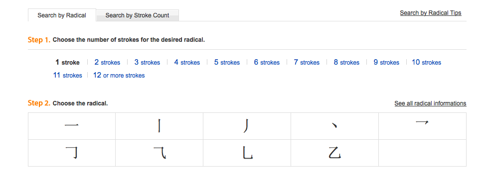 这是nciku的主要功能,因为它是你在主页上看到的第一个东西。甚至还有iPhone/iPad应用程序(供购买)。这本词典最棒的地方是你可以用英语搜索,拼音,或汉字。你可以输入一个英文单词,然后找到对应的中文单词,然后输入拼音根据你听到但不太懂的单词,或者复制汉字粘贴到搜索栏中。这还不是全部,你甚至可以通过词根、笔画数来搜索,或者用鼠标画一个汉字,然后查看结果。