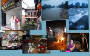 在第四天的晚上,我们从成都乘公共汽车去平乐古镇。我们住在一家宾馆里。他们的经理有个小宝宝。首先我们去河边看了看,然后我们去吃饭了。我们点了一些鱼和排骨——它们都很好吃!晚饭后我们去了卡拉ok。我们唱英文歌,也听当地人唱中文歌。