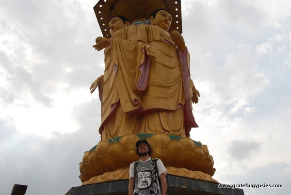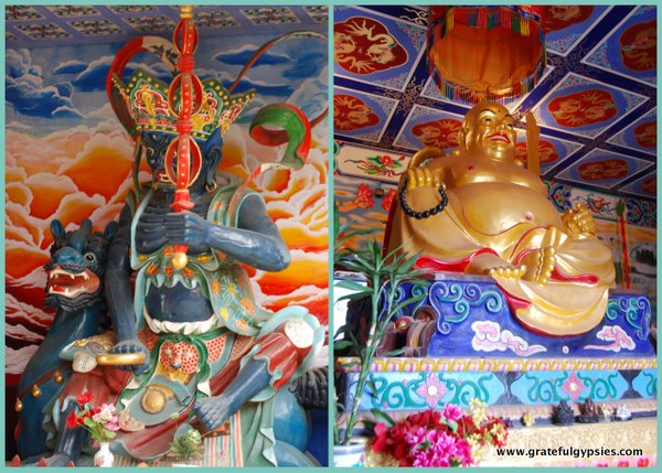 在寺庙建筑群的后面是一个巨大的5层圆形结构。它致力于观音(观音- guān yīn),慈悲之神,他以三种不同的姿势被描绘在结构的顶部。