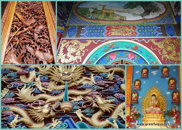 鲜艳的色彩和两条扭曲的龙守卫着入口,这是相当值得一看的景象。你可以慢慢去探索,因为这里有很多复杂的雕刻、雕像和绘画可以欣赏。
